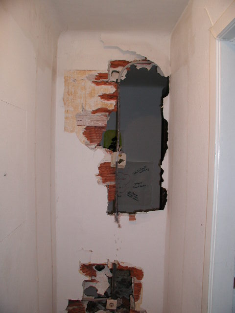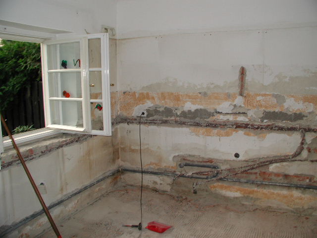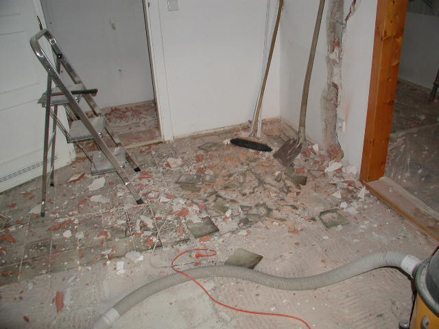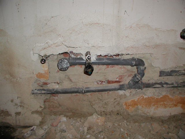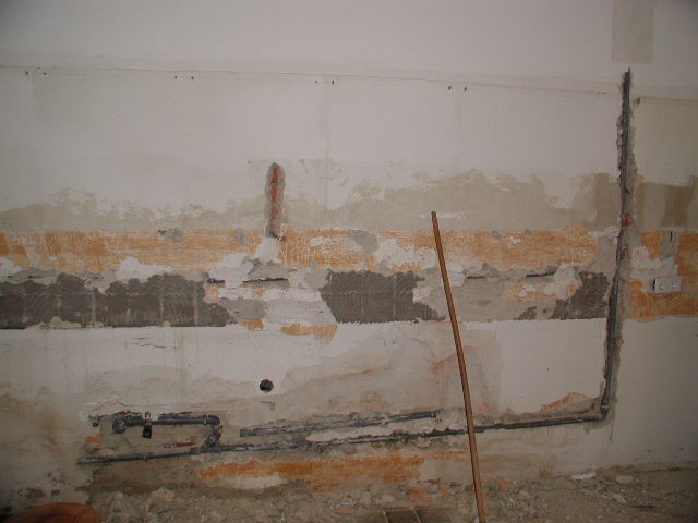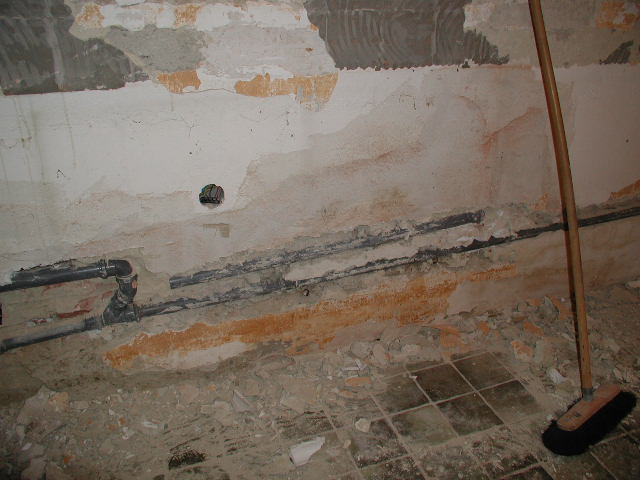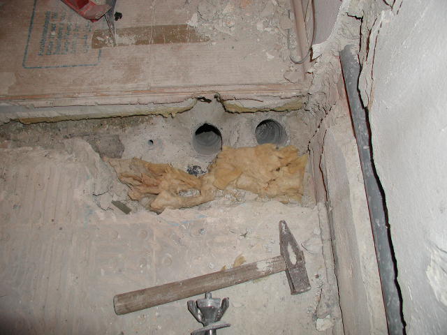 Das Aufstemmen der Abflussrohre war wichtig, denn hier wurden alte Bauschäden (Leckagen) vermutet und auch gefunden. | |||