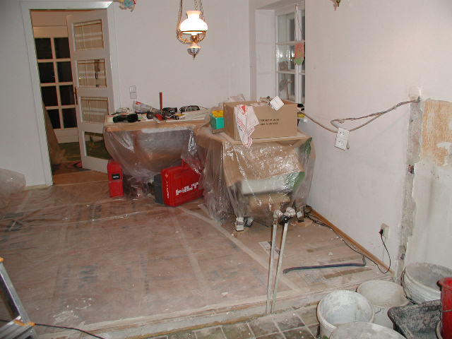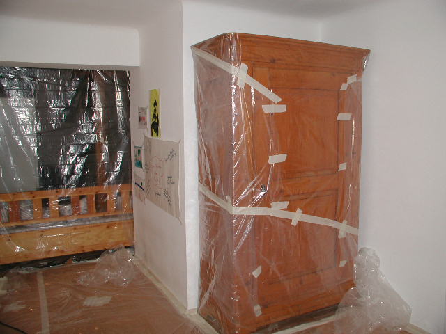 Der übrige Teil des Hauses wurde (fast) hermetisch abgeklebt und mit Planen gesichert. | |||
